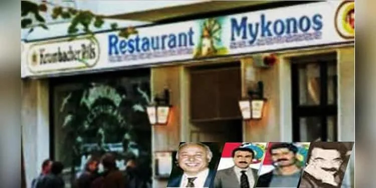 میکونوس نام رستورانی است در برلین که در تاریخ ۲۶شهریو ۱۳۷۱ تعدادی از سران حزب دموکرات کردستان ایران در این رستوران توسط تروریستهای اعزامی از سوی سپاه پاسداران و حزبالله لبنان بهقتل رسیدند. این ترور تأثیر بسیاری بر روی روابط بین رژیم آخوندی و کشورهای اروپایی داشت و پای آخوند علی خامنهای، آخوند رفسنجانی، وزیر سابق اطلاعات آخوند علی فلاحیان و شمار دیگری از کارگزاران دیکتاتوری آخوندی به میان کشیده شد. تا آنجا که آلمان و کشورهای عضو اتحادیه اروپا، سفرای خود را از ایران فراخواندند و مناسبات اتحادیه اروپا و رژیم ملایان بهکلی بحرانی شد.