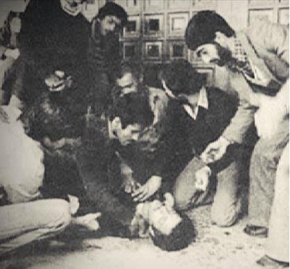 ناگهان سرگرد ناصر شهرستانی، رئیس مزدور کلانتری بهارستان با سلاح خود، آموزگاران آزاده را هدف قرار داد.
