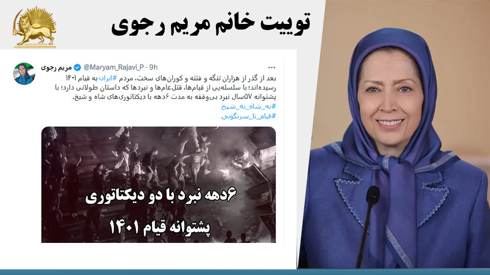 بعد از گذر از هزاران تنگه و فتنه و کورانهای سخت، مردم #ایران به قیام ۱۴۰۱ رسیدهاند؛ با سلسلهیی از قیامها، قتلعامها و نبردها که داستان طولانی دارد؛ با پشتوانه ۵۷سال نبرد بیوقفه به مدت ۶دهه با دیکتاتوریهای شاه و شیخ.#نه_شاه_نه_شیخ#قيام_تا_سرنگونى pic.twitter.com/bPQf4eLzgK