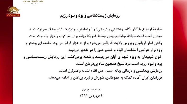 مسعود رجوی رزمایش زیست شناسی و بود و نبود رژیم پیام شماره ۲۳
