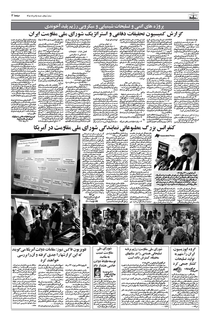 «در یک اقدام تعجب برانگیز که ممکن است تعادل‌قوای منطقه را به‌هم بزند، شورای حاکم عراق دیروز رأی داد که گروه پیشتاز مخالف ایرانی را اخراج کرده و اموالش را ضبط نماید. این حکم خواهان اخراج ۳۸۰۰ نفر از اعضای این گروه تا آخر همین ماه است (تا آخر دسامبر۲۰۰۳).
