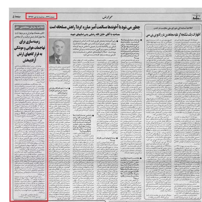اطلاعیه سازمان مجاهدین خلق ایران-اول دی ۱۳۷۷