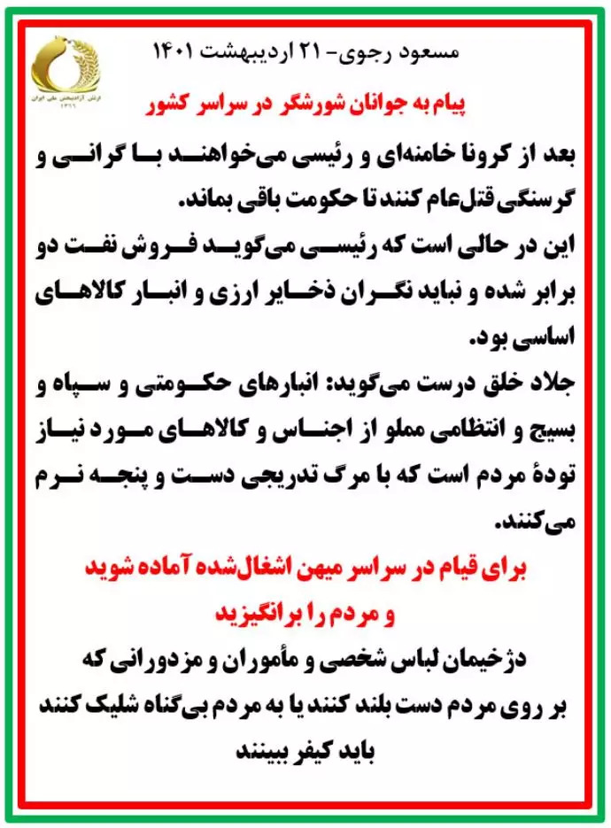 مسعود رجوی- ۲۱اردیبهشت ۱۴۰۱
