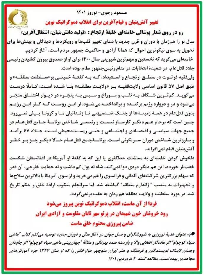مسعود رجوی- نوروز ۱۴۰۱