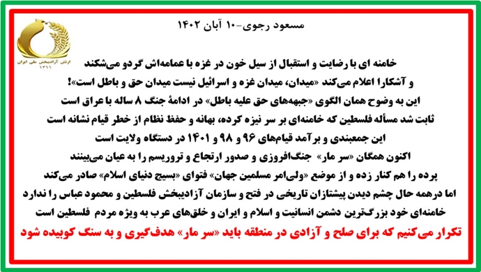 خامنهای خود بزرگترین دشمن انسانیت و اسلام و ایران و خلقهای عرب بهویژه مردم فلسطین است