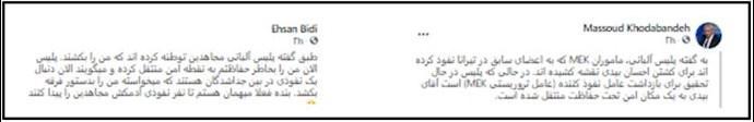 گرداننده سایت اینترلینک اطلاعات آخوندها مزدور خدابنده نوشت: «به گفته پلیس آلبانی، مأموران مجاهدین خلق که به اعضای سابق در تیرانا نفوذ کردهاند برای کشتن احسان بیدی نقشه کشیدهاند. در حالی که پلیس در حال تحقیق برای بازداشت عامل نفوذ کننده (عامل تروریستی مجاهدین خلق) است آقای بیدی به یک مکان امن تحت حفاظت منتقل شده است». سپس با همین الگو مزدور بیدی ادعا کرد: «طبق گفته پلیس آلبانی مجاهدین توطئه کردهاند که من را بکشند. پلیس الآن من را بهخاطر حفاظتم به نقطه امن منتقل کرده و میگویند الآن دنبال یک نفوذی در بین جدا شدگان هستند که میخواسته من را بهدستور فرقه بکشد. بنده فعلاً مهمان هستم تا نفر نفوذی آدمکش مجاهدین را پیدا کنند».