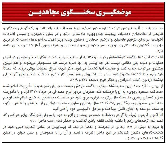 «در راستای اهداف وزارت اطلاعات رژیم آخوندی و مزدوری برای آن»