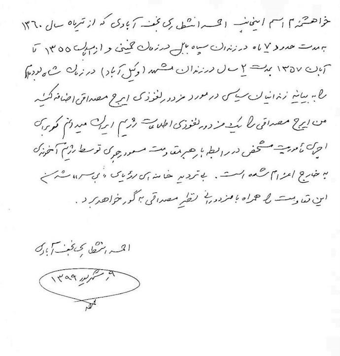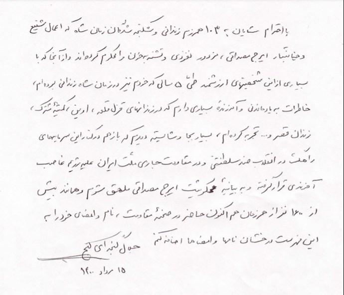 ۱۵۷۱- رضا قریشی (زندان اوین) درگذشت در ۱۹فروردین ۱۴۰۰-دستخط به تاریخ اول فروردین ۱۴۰۰