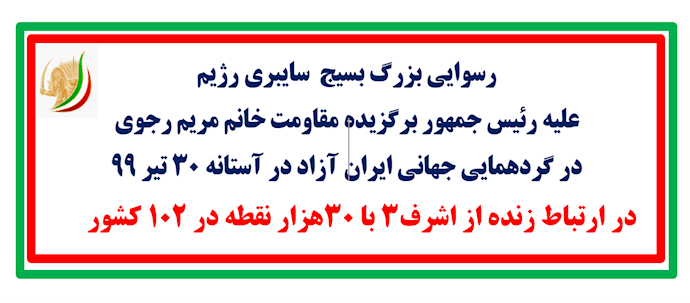 وزارت اطلاعات از هر سازمان سیاسی احتمالی در ایالات متحده برای تبلیغ پیام -رسوایی بزرگ بسیج سایبری رژیم علیه رئیسجمهور برگزیده مقاومت