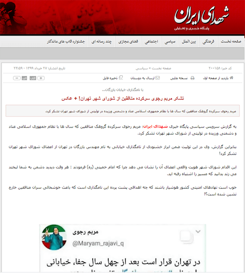 جعل نشریه مجاهد چنان زیر دندان ولایت مزه کرده بود که این بار سایت حکومتی دیگری در اقدامی مشابه، از یک اکانت توئیتری جعلی تولیدشده سایبری نظام پرده برداشت که گویا خانم رجوی از شورای قلابی شهر تهران برای طرح تغییر نام یک خیابان، تشکر میکند!