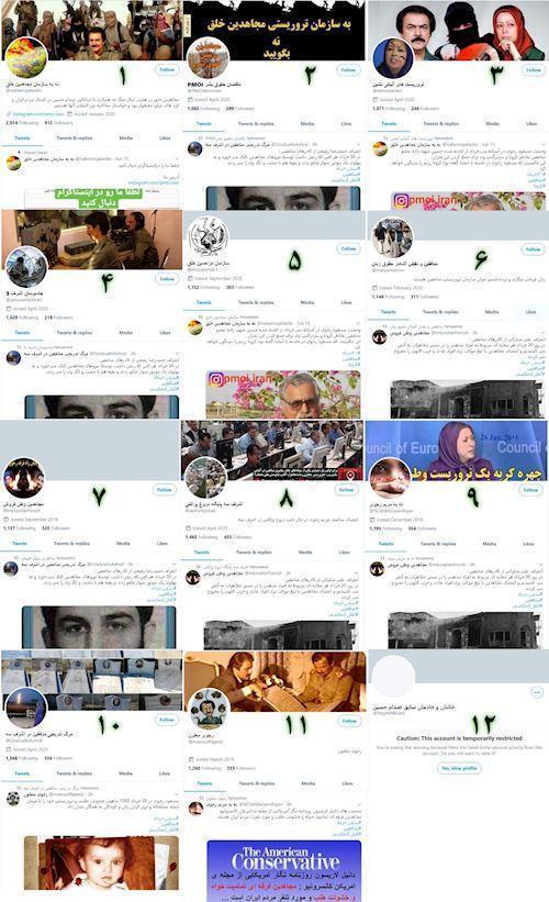 از جملهٔ این مثالها میتوان به ۱۲ اکانت با نامهای خاصی که همگی با فرهنگ نظام ولایی نامگذاری شدهاند اشاره کرد که اکثراً تولیدی۲۰۲۰ بوده و این روزها در لجنپراکنی بهشدت فعالند: