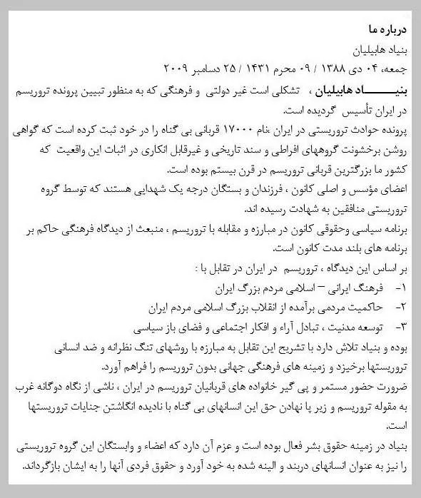 معرفی هابیلیان توسط خودش دی۱۳۸۸ – تعریف تروریسم و حقوقبشرتوسط هابیلیان!