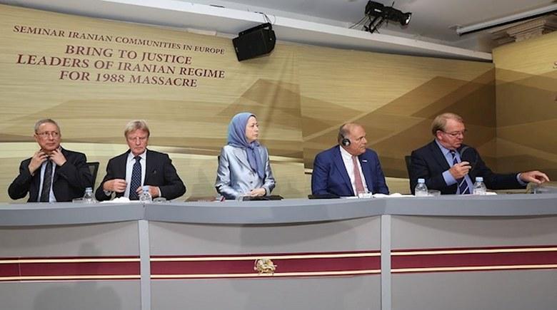 روز شنبه ۱۳شهریور(۳سپتامبر) مریم رجوی، در اولین روز از سمینار جوامع ایرانی در اروپا جامعه بین‌المللی و دولتهای غربی را فراخواند که سران نظام ولایت‌ فقیه را به‌خاطر جنایت علیه بشریت در ایران به‌ویژه قتل‌عام ۳۰هزار زندانی سیاسی در سال ۶۷ در مراجع بین‌المللی در مقابل عدالت قرار دهند.